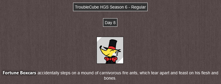 (morning)...And then is eaten by a horde of fire ants.